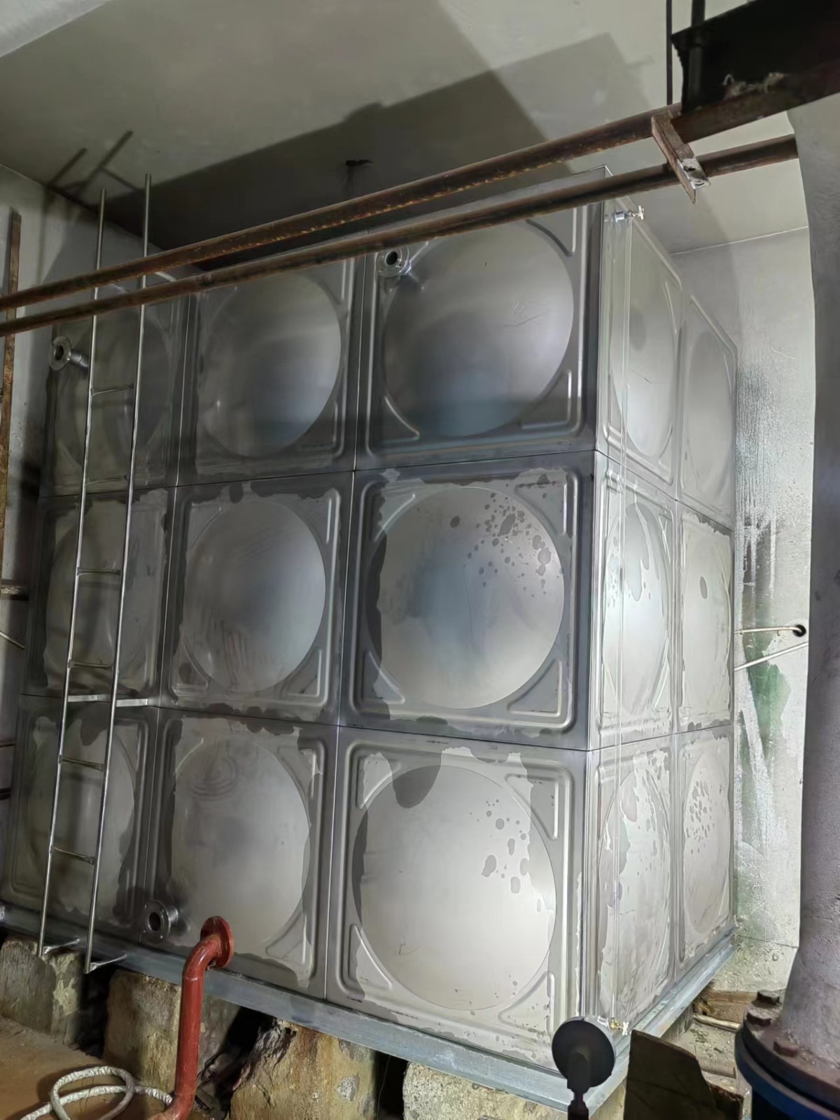 我司承接的內(nèi)蒙古烏蘭察布市京熱(烏蘭察布)熱力有限公司下屬光輝站(133站,134站)不銹鋼焊接水箱安裝試水完成。不銹鋼全焊接水箱為現(xiàn)場組合方式,強度高、密封性好,防止水質(zhì)二次污染,永不滲漏,重量輕,是普通鋼板水箱的二分之一,價格合理,外觀整潔、光亮、美觀、實用等特點。