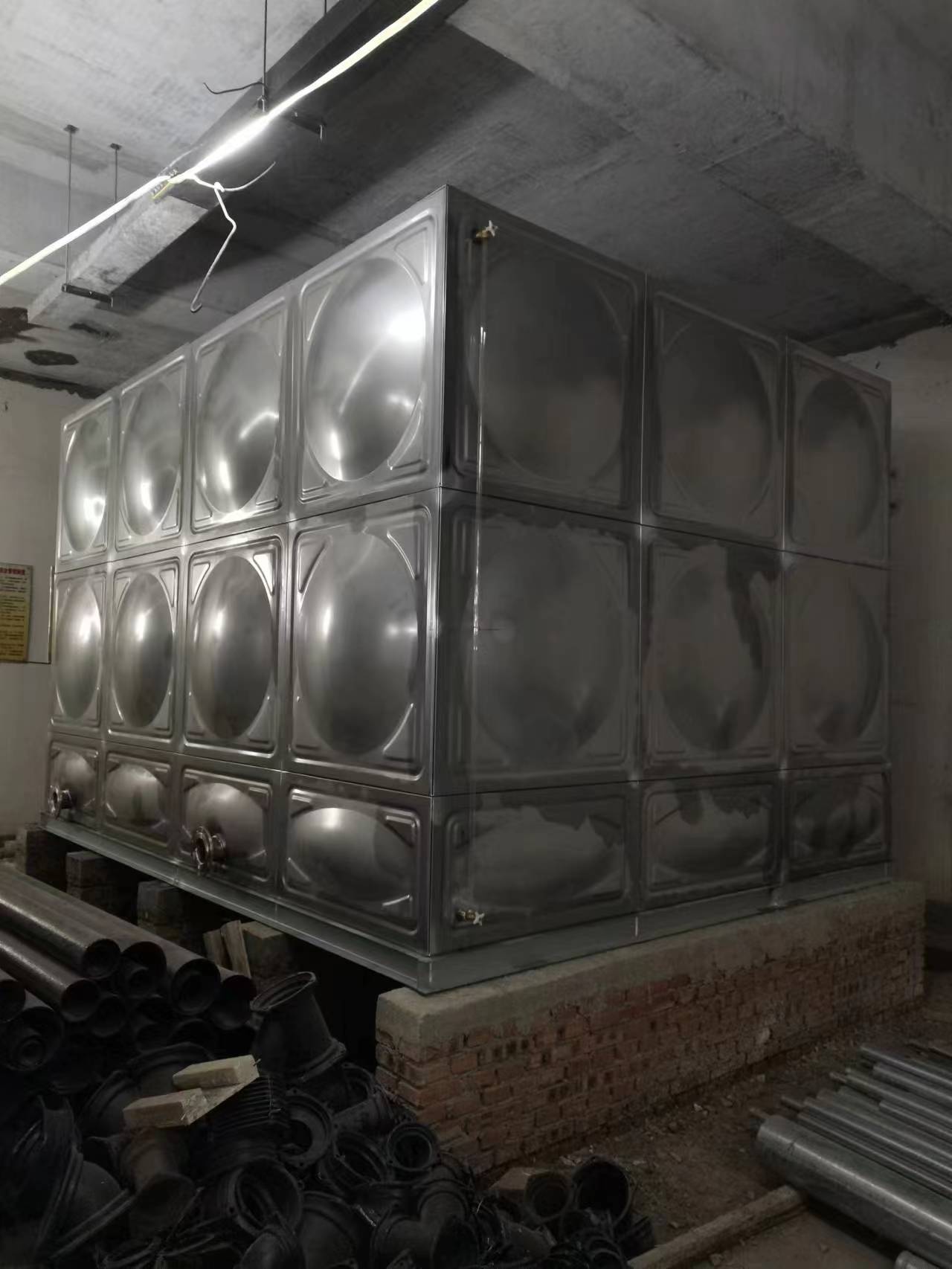 我司承接的山東省濟(jì)南市市中區(qū)山東省教育廳改造項(xiàng)目,現(xiàn)已安裝試水完畢。不銹鋼水箱符合消防、建筑基準(zhǔn)法 在大樓發(fā)生火災(zāi)時(shí),與玻璃鋼容器比較更明的優(yōu)點(diǎn)是不銹鋼槽也同時(shí)可以起到初期滅火用供水箱的作用,這是符合有關(guān)消防、建筑基準(zhǔn)法的。不銹鋼水箱輕便而強(qiáng)度高 SUS的屈服強(qiáng)度相當(dāng)于碳素鋼的1.5倍,玻璃鋼的6倍,對(duì)于耐震、耐積雪、耐風(fēng)壓、耐沖擊等具有出類拔萃的優(yōu)良性。