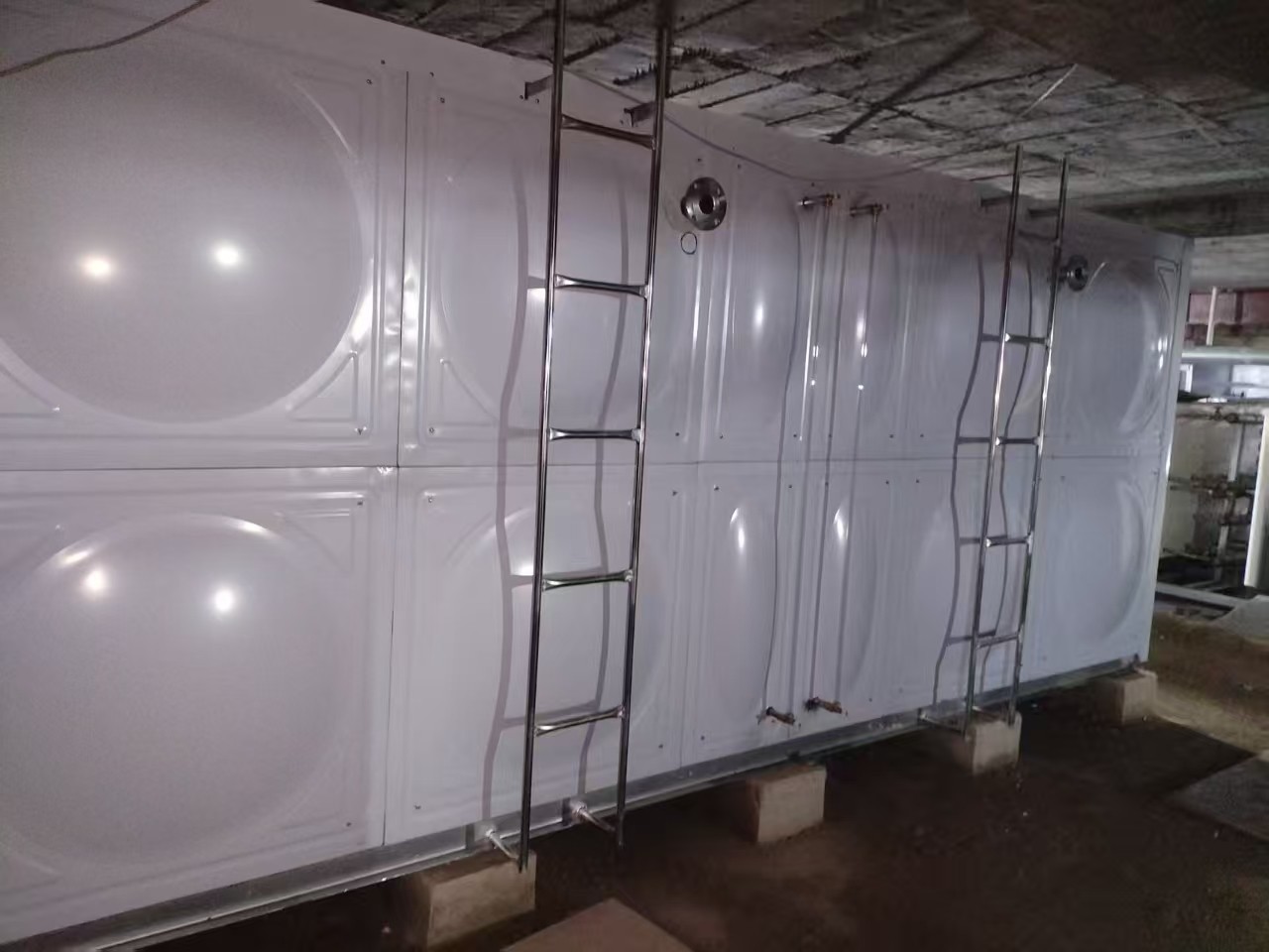 我司承接的山東省煙臺(tái)市富凱商廈泳池均衡保溫水箱,此水箱已安裝并驗(yàn)收試水完工。熱鍍鋅是將鋅金屬通過(guò)熱融化浸泡在鋼板表面形成的一層鋅層,從而起到防止鋼材腐蝕的作用。這種處理方式使得熱鍍鋅鋼板水箱能夠在惡劣的環(huán)境中長(zhǎng)期使用,不易生銹,大大延長(zhǎng)了水箱的使用壽命。